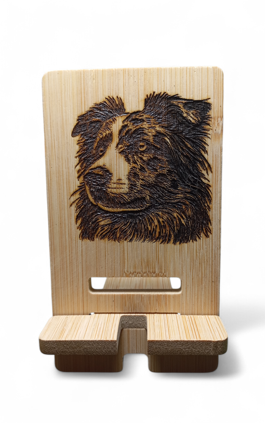 Support de téléphone en bambou, pyrogravé,  pour le bureau : les téléphones portables peuvent afficher des écrans paysage et portrait, libérant ainsi vos mains.
