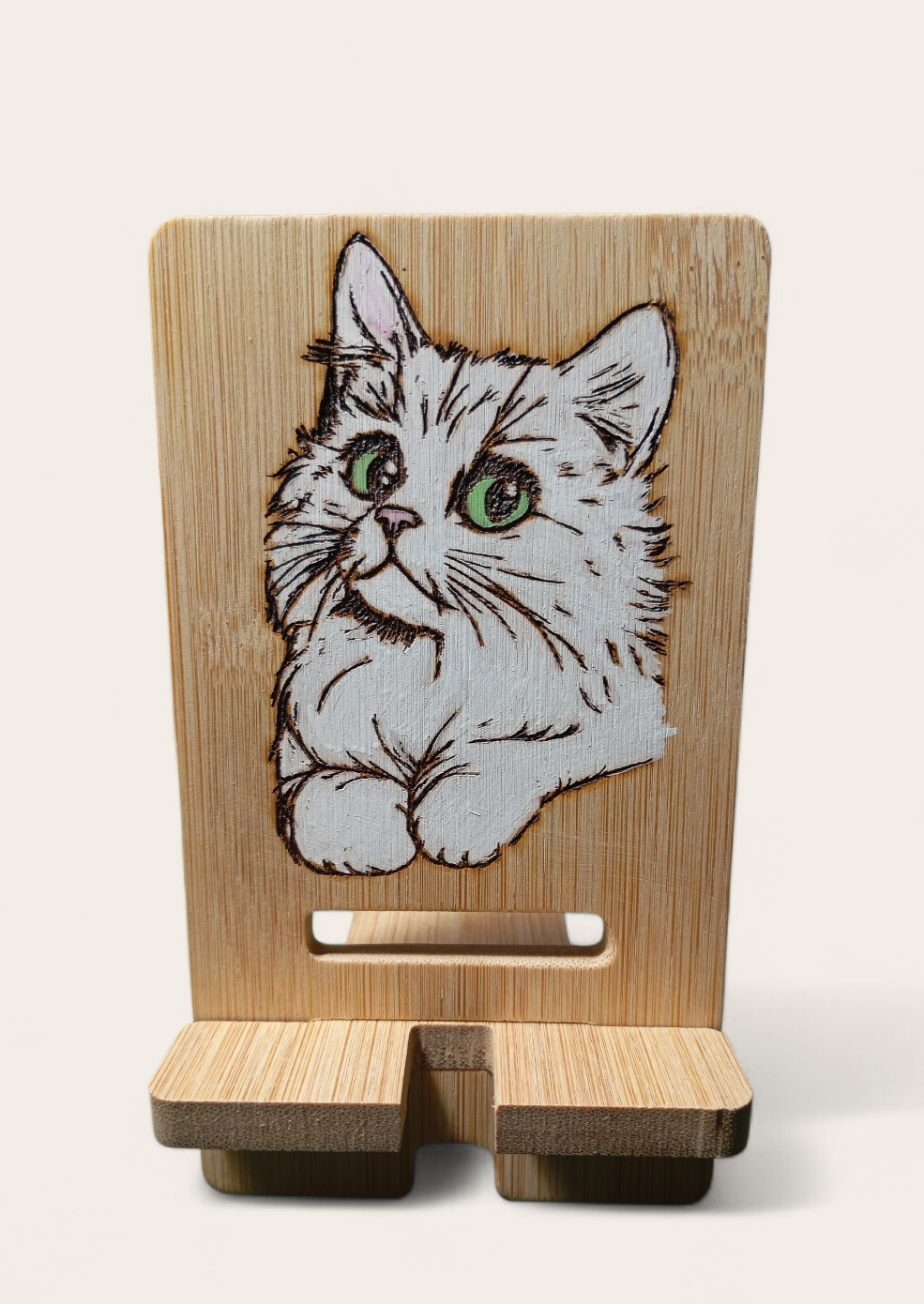 Support de téléphone en bambou, pyrogravé,  pour le bureau : les téléphones portables peuvent afficher des écrans paysage et portrait, libérant ainsi vos mains.