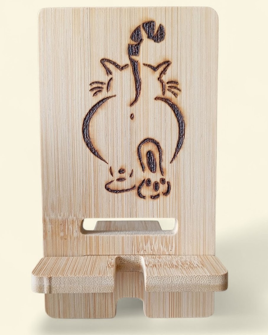 Support de téléphone en bambou, pyrogravé,  pour le bureau : les téléphones portables peuvent afficher des écrans paysage et portrait, libérant ainsi vos mains.