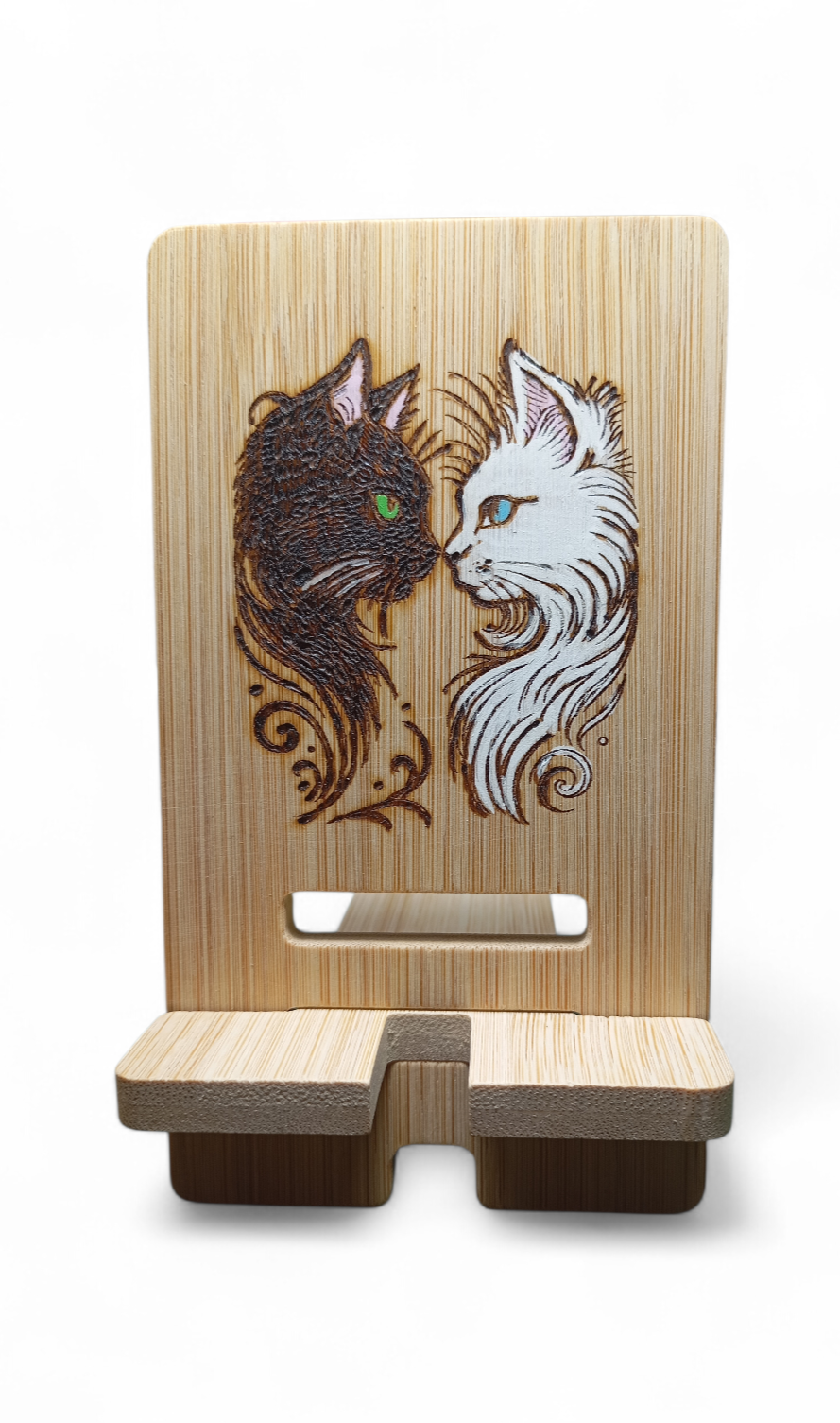 Support de téléphone en bambou, pyrogravé,  pour le bureau : les téléphones portables peuvent afficher des écrans paysage et portrait, libérant ainsi vos mains.