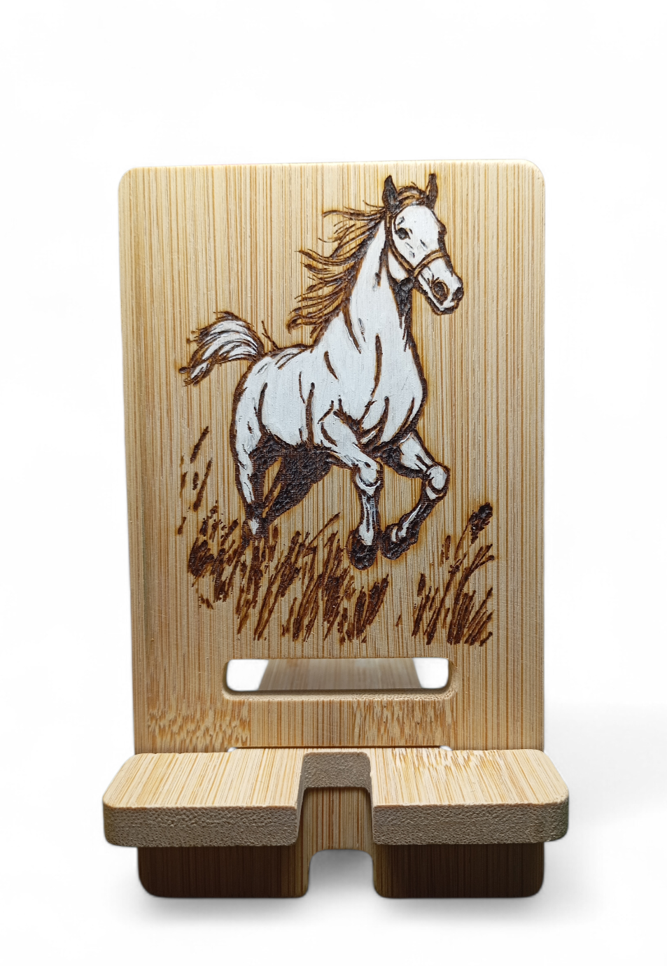 Support de téléphone en bambou, pyrogravé, pour le bureau : les téléphones portables peuvent afficher des écrans paysage et portrait, libérant ainsi vos mains.