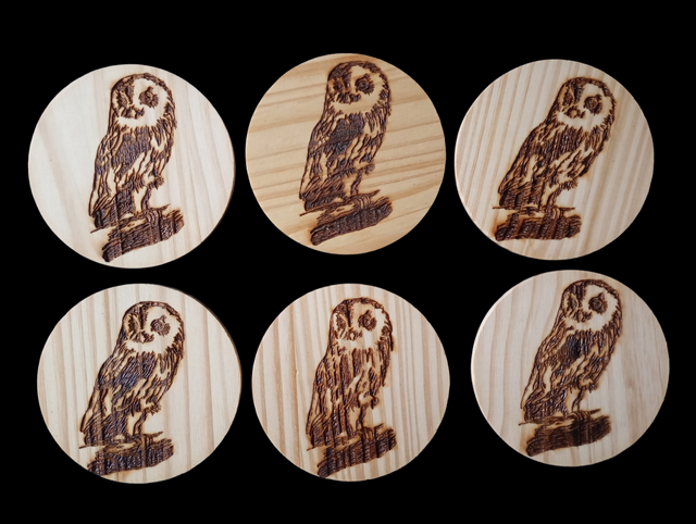 6 dessous de verres, pyrogravés et vernis dans leur support en métal noir. Diamètre : 10 cm Modèle unique. Personnalisation possible. D’autres modèles dans ma boutique.
