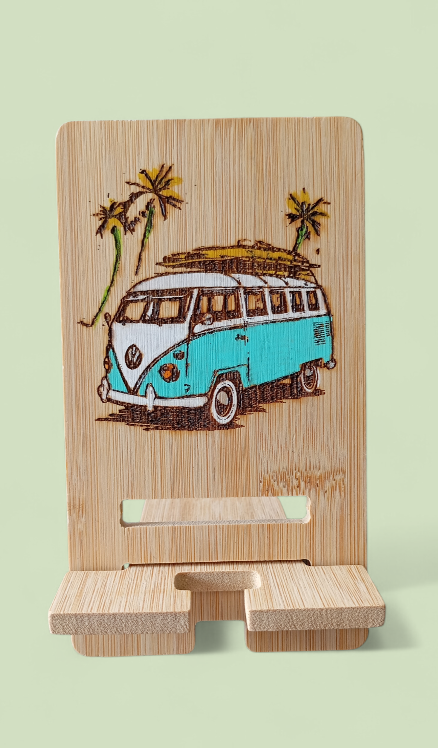 Support de téléphone en bambou, pyrogravé,  pour le bureau : les téléphones portables peuvent afficher des écrans paysage et portrait, libérant ainsi vos mains.
