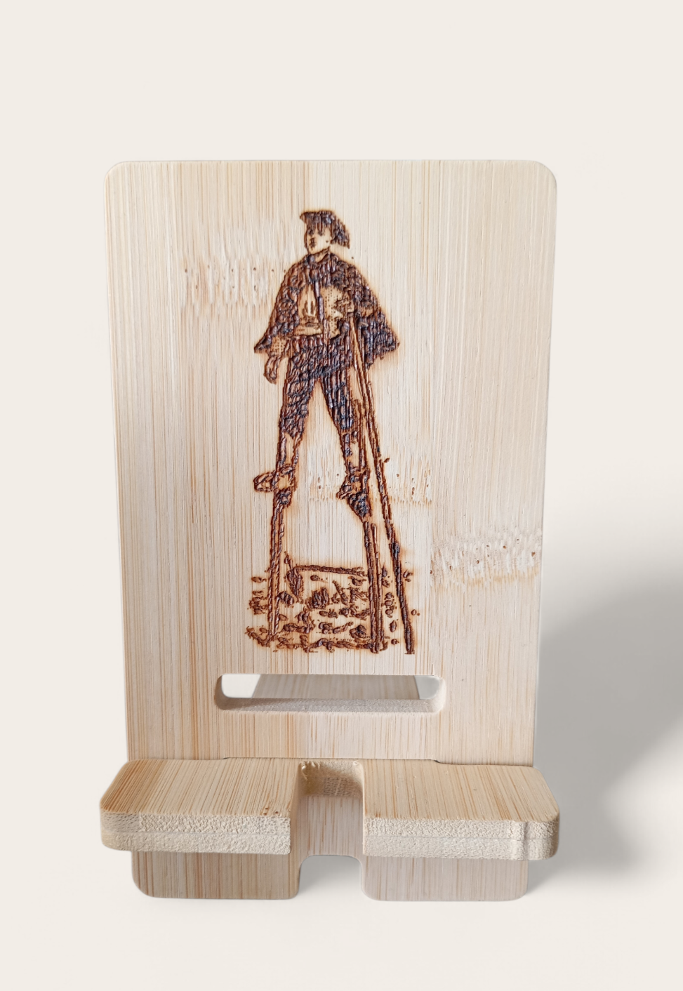 Support de téléphone en bambou, pyrogravé,  pour le bureau : les téléphones portables peuvent afficher des écrans paysage et portrait, libérant ainsi vos mains.