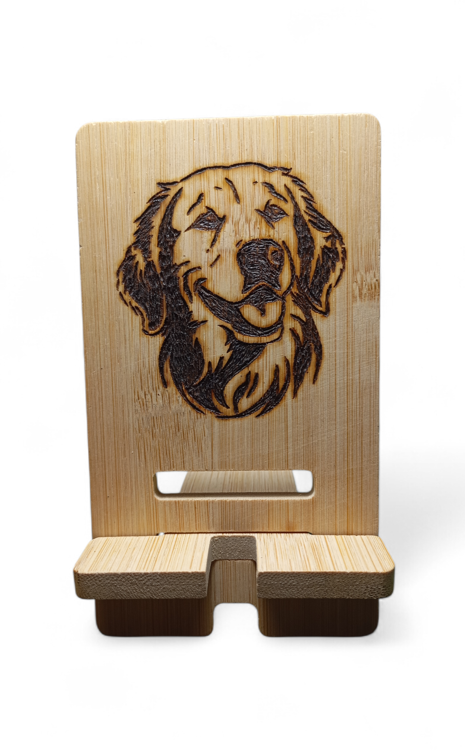 Support de téléphone en bambou, pyrogravé,  pour le bureau : les téléphones portables peuvent afficher des écrans paysage et portrait, libérant ainsi vos mains.
