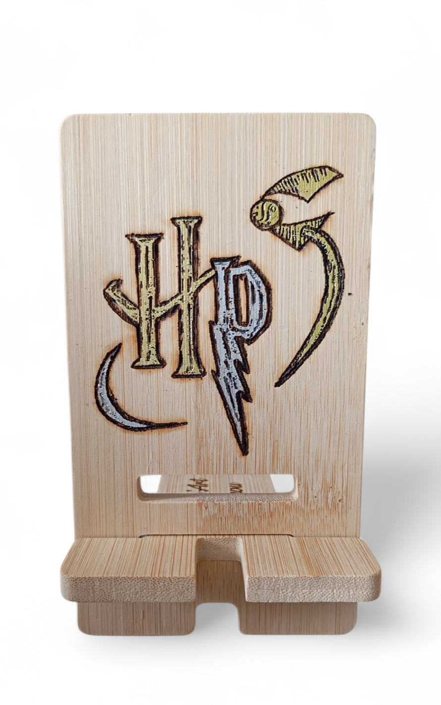 Support de téléphone en bambou, pyrogravé,  pour le bureau : les téléphones portables peuvent afficher des écrans paysage et portrait, libérant ainsi vos mains.