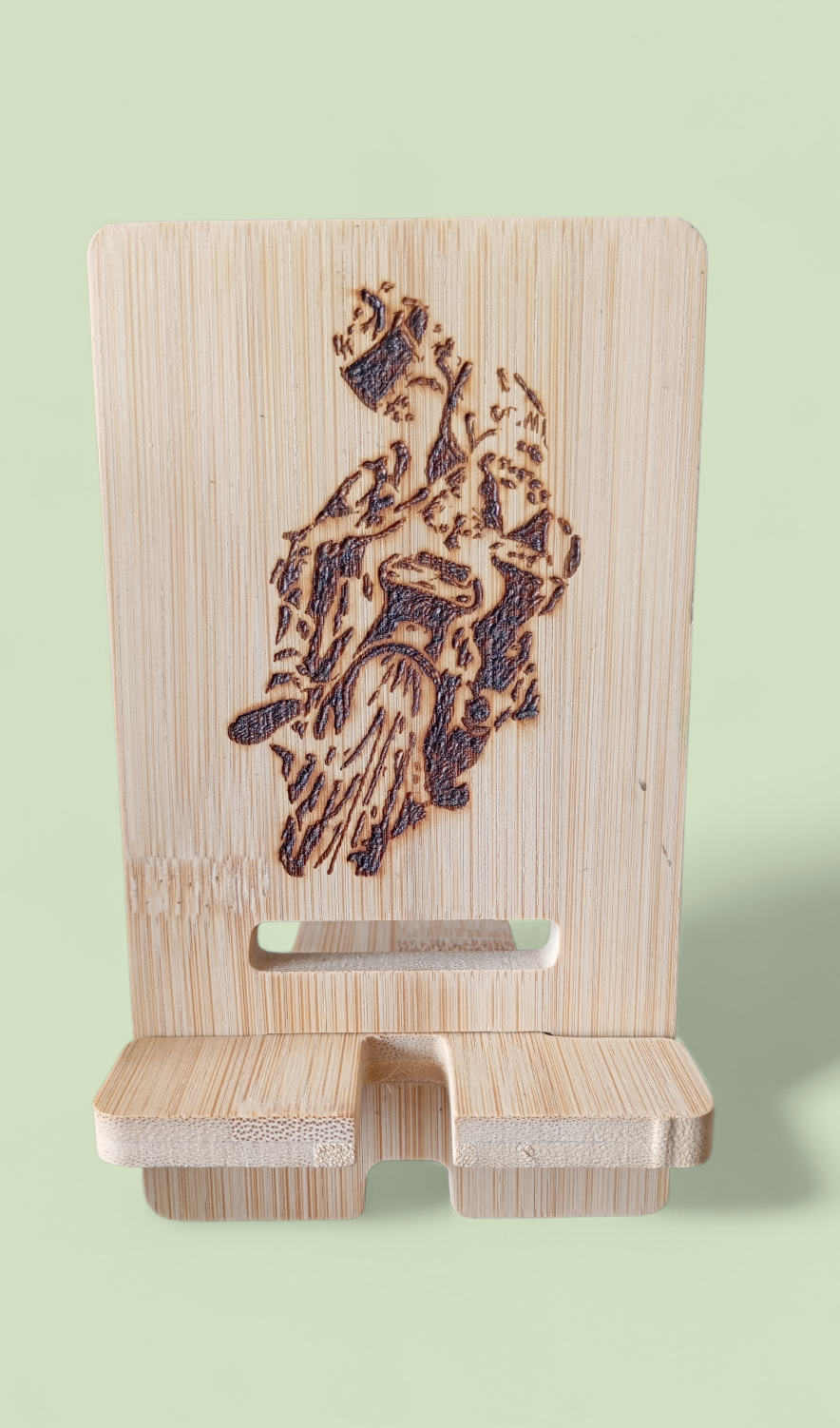 Support de téléphone en bambou, pyrogravé,  pour le bureau : les téléphones portables peuvent afficher des écrans paysage et portrait, libérant ainsi vos mains.
