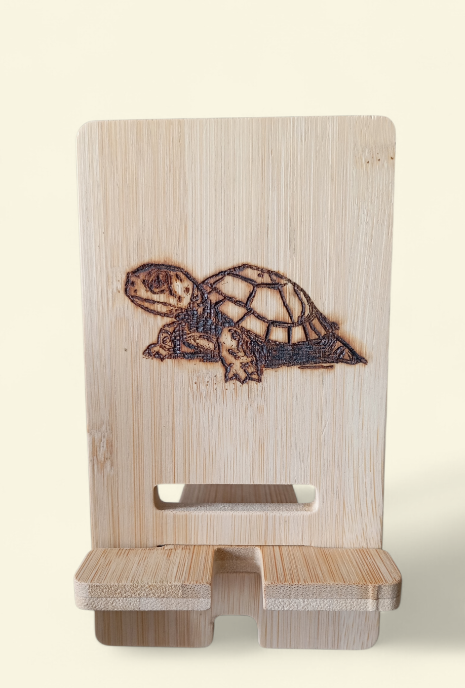 Support de téléphone en bambou, pyrogravé,  pour le bureau : les téléphones portables peuvent afficher des écrans paysage et portrait, libérant ainsi vos mains.