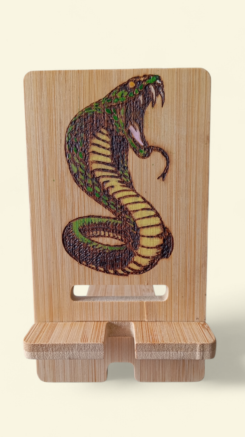 Support de téléphone en bambou, pyrogravé,  pour le bureau : les téléphones portables peuvent afficher des écrans paysage et portrait, libérant ainsi vos mains.