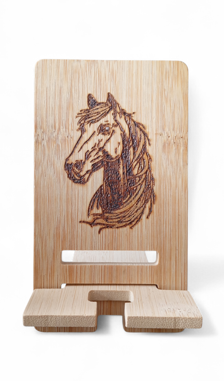 Support de téléphone en bambou, pyrogravé,  pour le bureau : les téléphones portables peuvent afficher des écrans paysage et portrait, libérant ainsi vos mains.